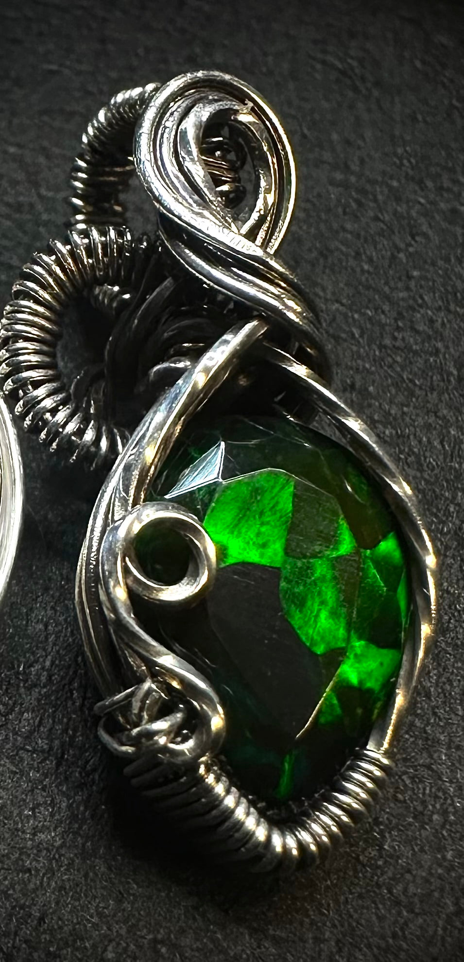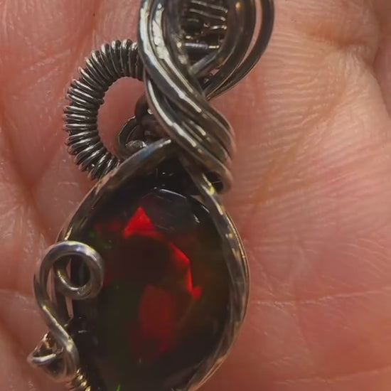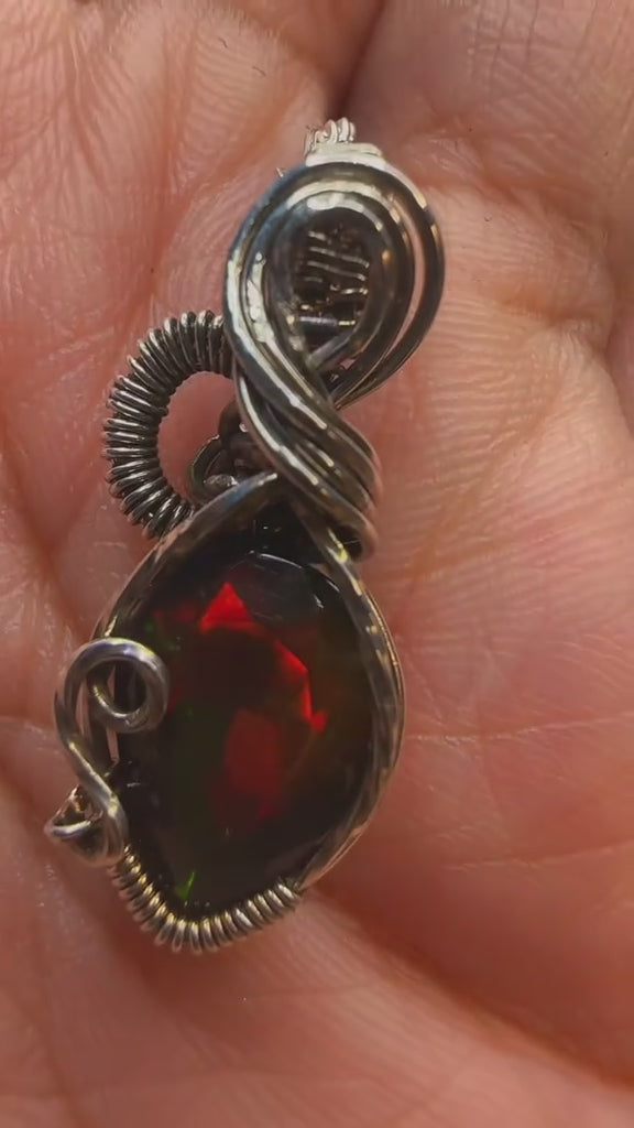 Beautiful high grade Smoked Opal with dual green and red fire set in a 925 sterling silver wire.