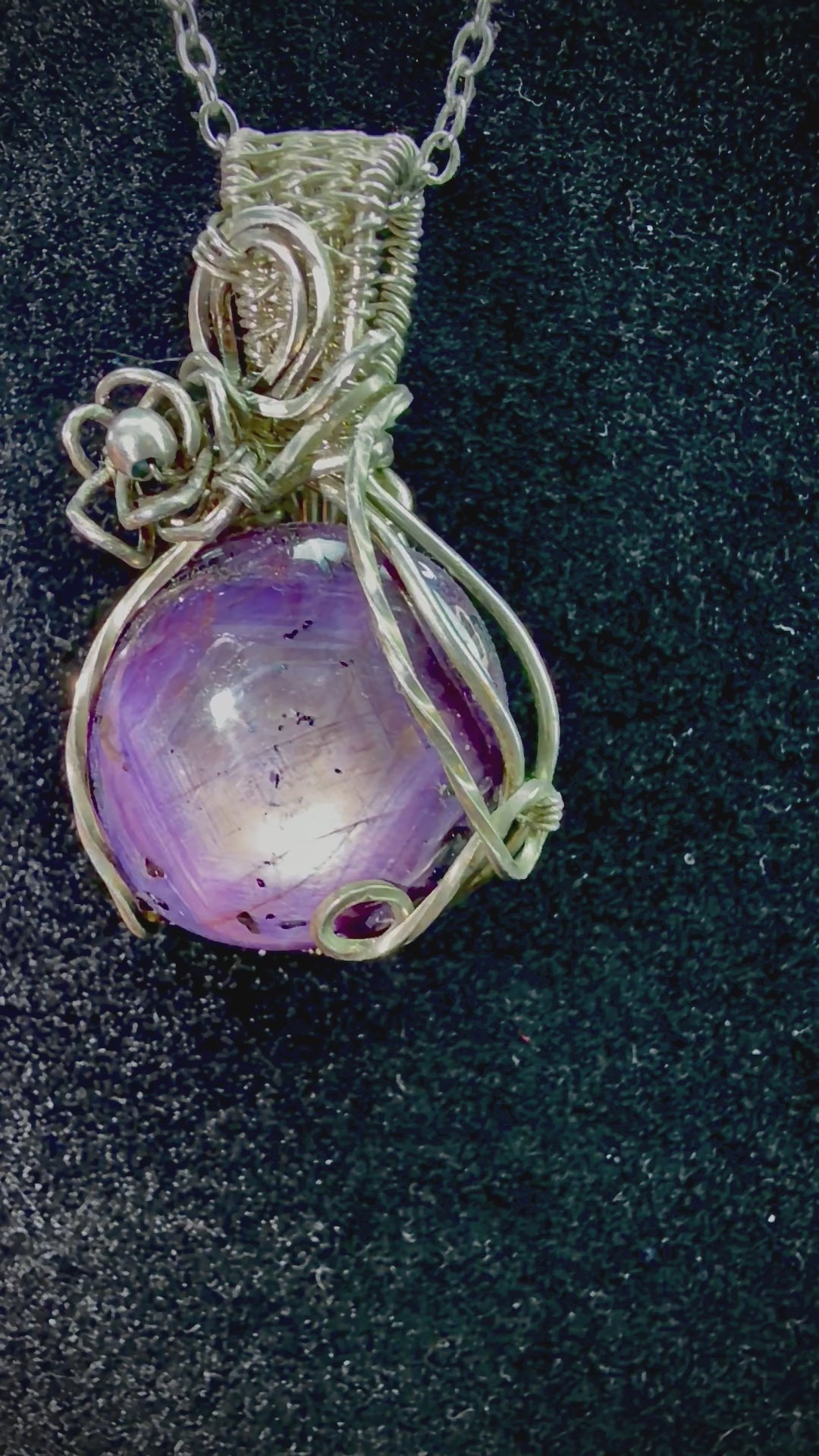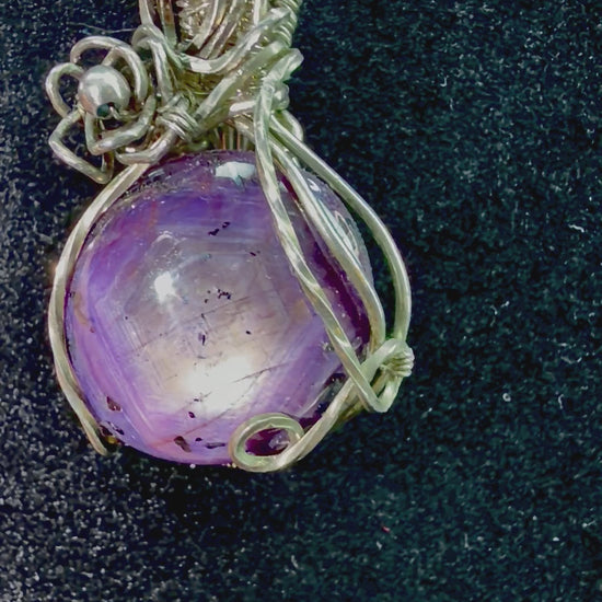 Absolutely Beautiful Purple Star Ruby weaved into a 925 sterling silver setting.